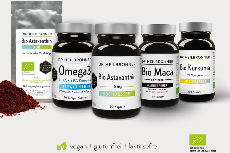 Wir, die Firma Dr. Heilbronner aus Stein bei Nürnberg, sind seit 10 Jahren als zertifizierter Hersteller von Bio-Astaxanthin auf dem